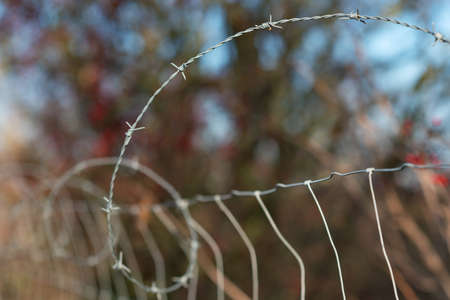 Barbed wire over the fence on a blurred background