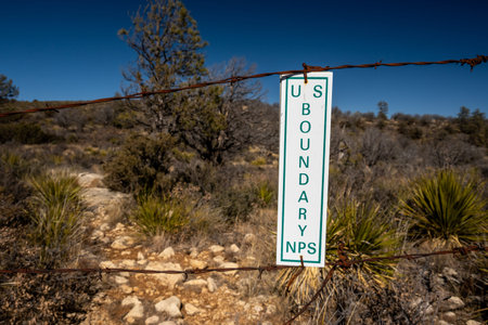 US Boundary Sign On A Rusted Barbed Wire Fence In Guadalupe Mountains National Park