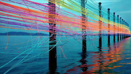 Fiber optic cables in the sea at sunset, close-up