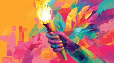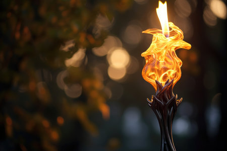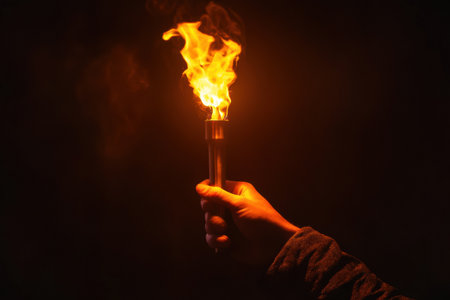 A radiant torch is proudly held high, illuminating the surroundings with its warm light. It symbolizes hope and guidance in a dark environment.