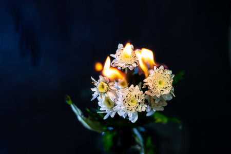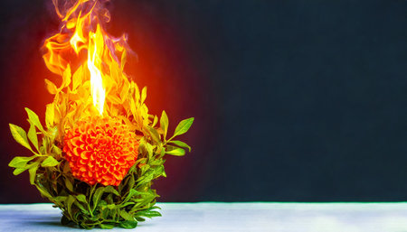 Burning plant on a blue background. Close-up. Macro. Shallow depth of field. generative ai