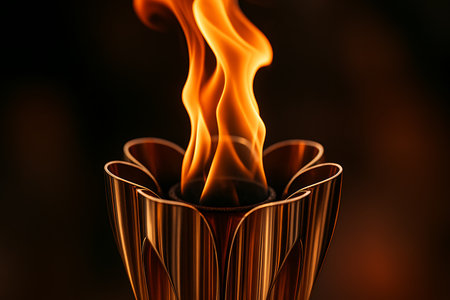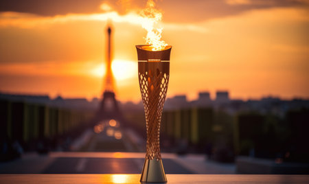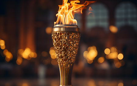 Olympic torch burning, illustration for Olympic games in summer 2024 imagined by AI generative - not the actual event.
