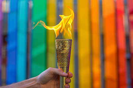 Bright and Colorful Image of Hand Holding the Olympic Torch for Creative Use