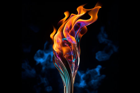 The vibrant Olympic torch contrasts beautifully against the black background. A high quality image making by generative ai.