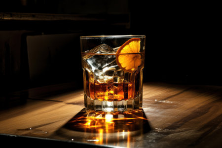 A luxury whiskey cocktail with lemon slice and ice cubes generated by artificial intelligence
