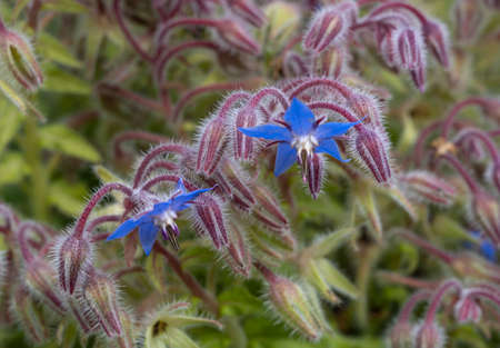 Borage flowers. Boraginaceae annual herb. The whole is covered with white hair and blooms star-shaped flowers. Flowers are edible and medicinal, and as a dye for painters