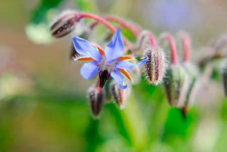 Close up image of borage blossom (Borago officinalis) on a meadow. Borago melliferous grass and seasoning.