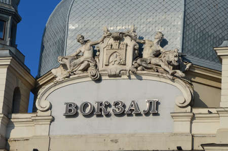Lviv. Ukraine. March, 2021 Art Nouveau facade of the central station Lviv-Holovnyi, Lviv, Ukraine Art Nouveau facade of the central station Lviv-Holovnyi, Lviv, Ukraine