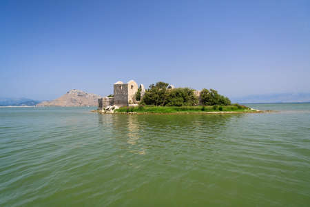 A deserted island on Lake Skadar. Skadar Lake is the largest lake in the Balkans. It is located on the border of Montenegro and Albania.
