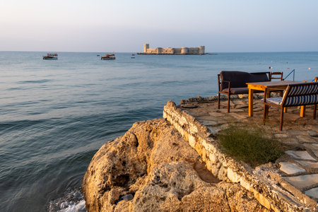 Mersin, Turkey - August 24, 2021: Kizkalesi or Maiden Castle near Mersin