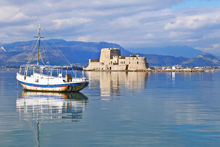 Bourtzi the water castle in the middle of Nafplio harbour in Greece