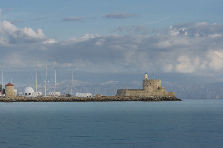 Saint Nicholas Fort guards the Mandraki harbour in Rhodes city, capital of Rhodes island in Greece.