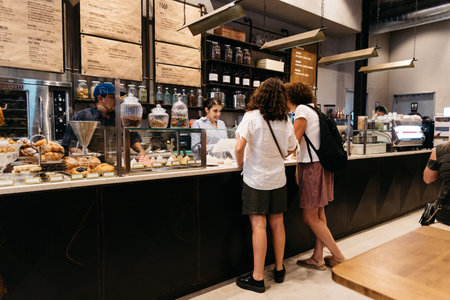 London, UK - November 26, 2019: Interior of the Camden Grocer, a luxury deli and cafe in Camdens Stables Market, London, UK. Selective focus.