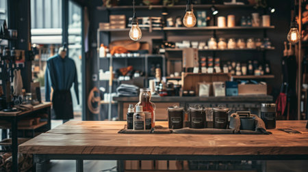 Warmly lit interior of a rustic shop with wooden tables displaying artisanal products. Highlights themes of handmade goods, retail ambiance, and boutique decor.