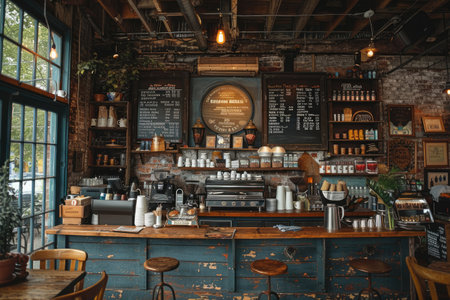 Industrial Chic Coffee Shop with Exposed Brick and Rustic Decor