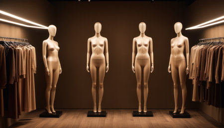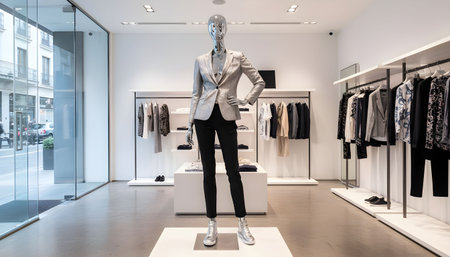 Modern and minimalist clothing store interior with a mannequin display