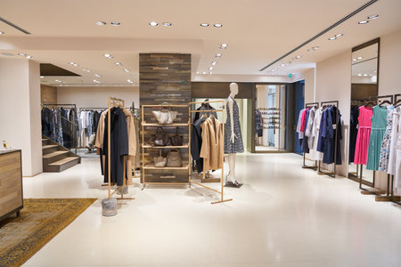 luxury and fashionable european different clothes shop in modern mall