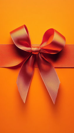 A vibrant orange ribbon bow on a solid background, perfect for gift wrapping and festive designs.