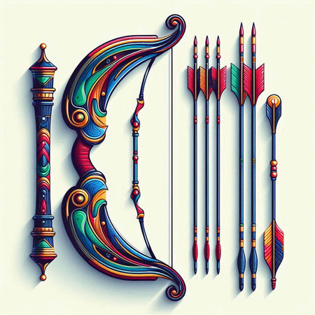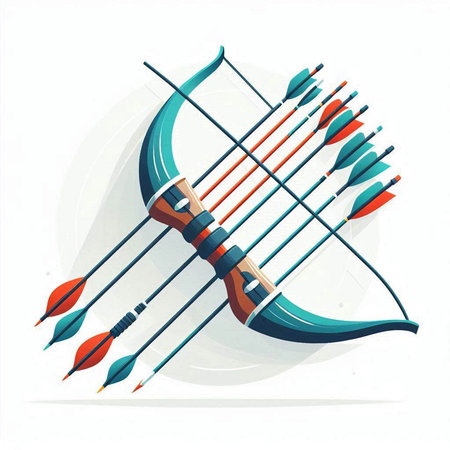 Vector illustration of an archery arrow and bow. Colorful design element.