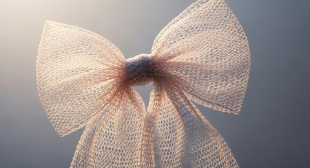 A delicate white lace bow with a soft pink center, illuminated by sunlight. Clear details and vibrant colors e...