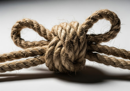 Close-up of a double knot in a rope, symbolizing a strong and enduring bond.