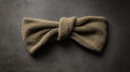 This image showcases a soft brown fuzzy headband delicately tied on a dark surface, highlighting its texture and elegant design. Ideal for fashion.