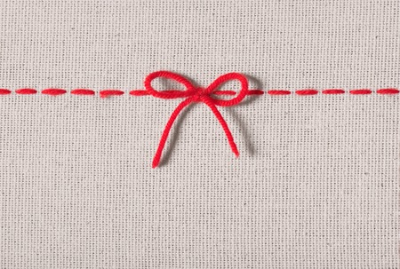 Knot from red rope of taiko drums o-kedo close up background. Musical instrument of Asia.
