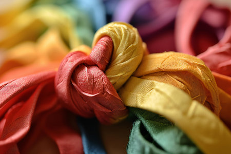 Brightly Colored Ropes Knotted Together Against a Vibrant Background