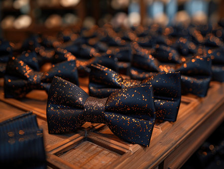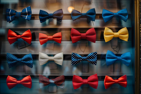 Stylish bowties on display in a shop window highlighting innovative fashion accessories for promotional purposes. Concept Fashion Accessories, Bowties, Shop Display, Innovative Designs