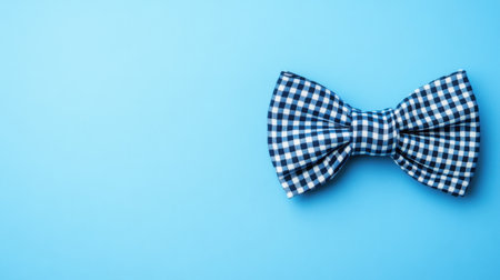 This image features a stylish checked bow tie resting on a bright blue background. Ideal for showcasing fashion concepts, formal attire, or accessories.