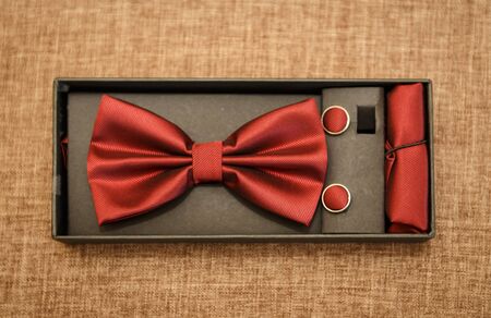 Bow tie accessory used for men's clothing. an illustration of buying placed on the tablecloths