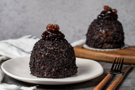 Pudding Cappuccino Cincau, one variation of Indonesian dessert. Served on a plate, close up, selective focus image.
