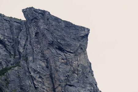 Majestic looking rocky mountain top with cloudy sky on background.