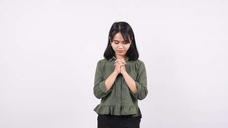 a Christian woman praying humbly isolated white background