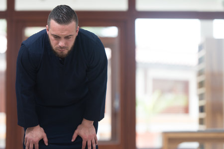 Concept photo of a person bowing down in front of someone else, showcasing the humility and sincerity of the heart during the ceremony