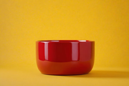 Red bowl on yellow background