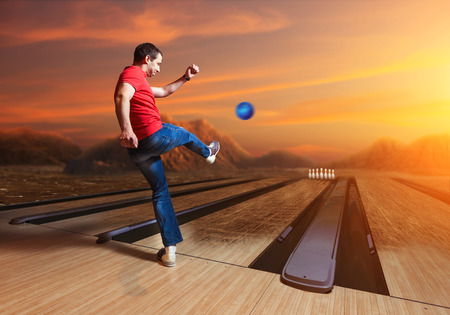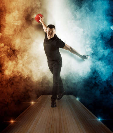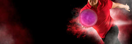 Professional bowling player in action. Concept of sport, movement, energy, dynamic, healthy lifestyle