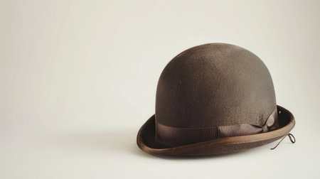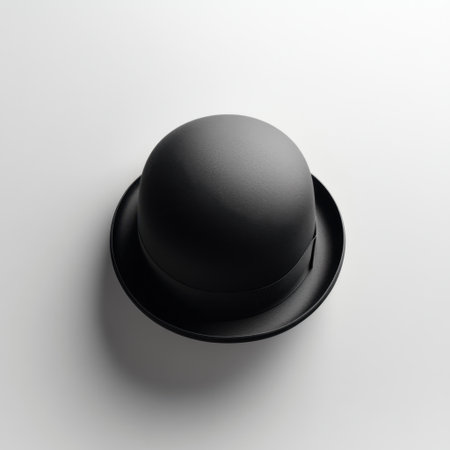 A stylish black bowler hat rests on a clean, minimalist background, highlighting both its classic design and its role as an elegant fashion accessory for diverse outfits.