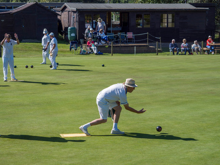 ISLE OF THORNS, SUSSEX/UK - SEPTEMBER 11 : Lawn Bowls Match at Isle of Thorns Chelwood Gate in Sussex on September 11, 2016. Unidentified people