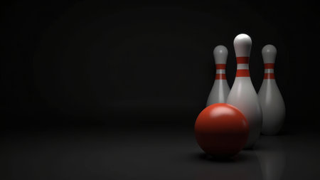 Captivating scene capturing the moment of a bowling ball striking the pins, creating a dynamic splash effect. Ideal for sports and leisure themes.