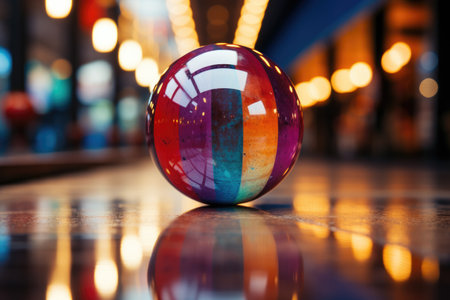 Bright neon bowling balls on gleaming lane in modern bowling alley for vibrant entertainment