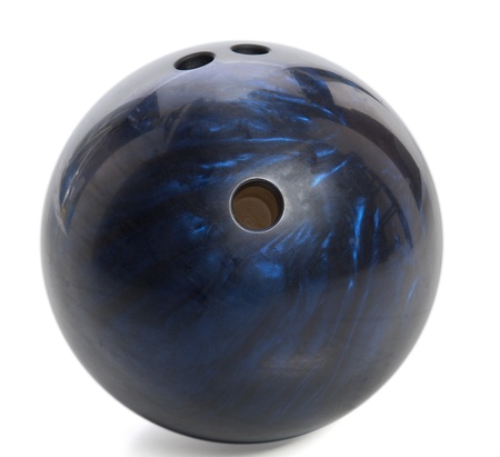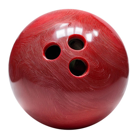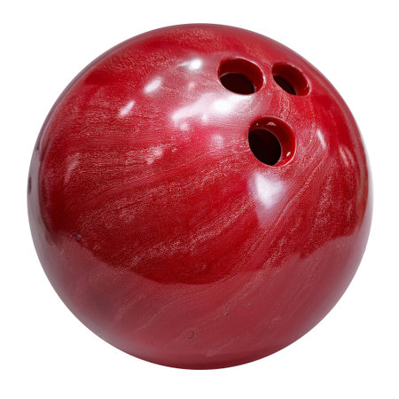 A detailed image of a bowling ball isolated against a white background. The ball features finger holes and a shiny, marbled surface, highlighting its use in competitive and recreational bowling. Perfect for sports designs and hobby-related projects.