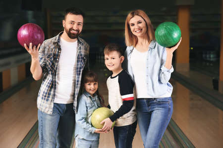 Happy family at bowling club