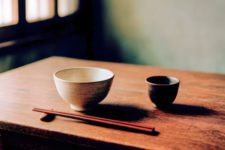 Table with chopsticks, epitomizing Japanese food culture, providing ample copy space