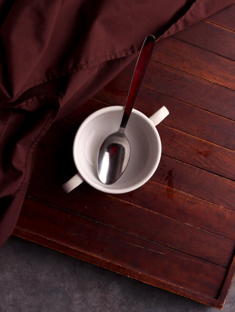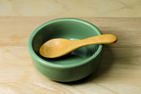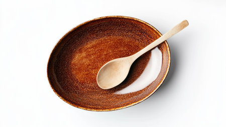 A minimalistic bowl and spoon on a wooden table capture the essence of calmness and simplicity, perfect for food and kitchen-themed projects.