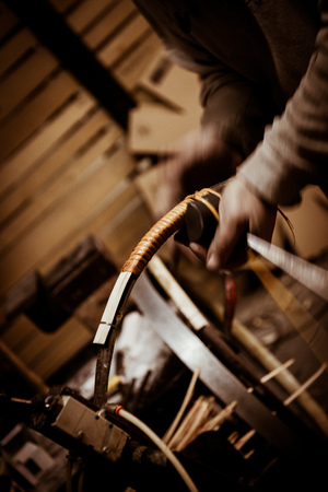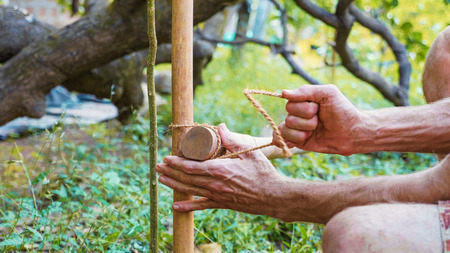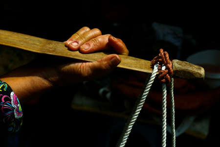 vintage style handicrafts thin bamboo stripes making with old man hands