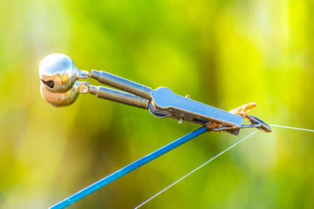 AUCH, FRANCE - MAY 11: Close-up of a hand holding a blue bow at the National tournament for young archers, on May 11, 2013, in Auch, France.