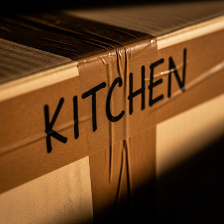 Close-up of a KITCHEN label on a box. KITCHEN is a German company founded in 1847.