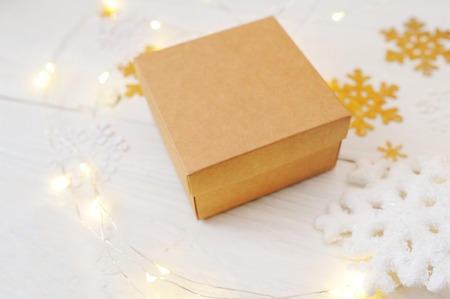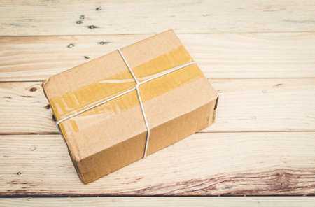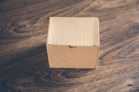 box on the brown wooden table background