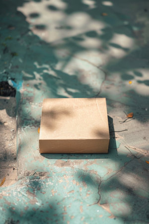 A cardboard box placed on a colored background, providing a simple yet versatile element for various design concepts and projects.